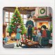 Esta é uma plataforma original do Habatour Creations festiva de mouse, decorada com um design de ilustração artística, apresentando uma família em volta da lareira no Natal com um direito autoral decorado da árvore de Natal por @Habatour Creations Copiar ou usar sem permissão é ilegal