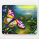 Mousepad artístico e colorido apresenta trabalho de arte digital assistida por IA que destaca a jornada da borboleta em um mundo de fantasia mágica