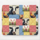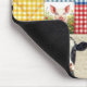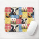 A colorful patchwork quilt design featuring gingham fabric and farm animals