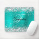 Mousepad Faux Shiny Silver Glitter Turquoise Monograma
