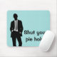 Um homem de negócios humorístico com a mensagem direta e direta... feche seu buraco de torta.