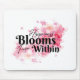 Permaneça inspirado enquanto você trabalha com este mouse pad que tem abstrato floral em aquarela e uma frase inspiradora em um fundo branco.