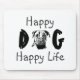 Belo Staffordshire Bull Terrier com texto que diz: "Feliz Cão Feliz Vida"