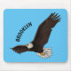 Esta águia-careca feliz está voando alto no céu. Desenhado no estilo de ilustração divertido.