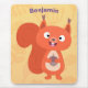 Este esquilo vermelho feliz e giro está pronto para comer uma bolota. Desenhado no estilo de ilustração de desenho para diversão maluca!