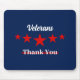 Blue Mousepad, traz palavras sobre veteranos," veteranos te obrigado" com fundo azul, e estrelas vermelhas entre as palavras, Apropriado para celebrar o dia dos veteranos.