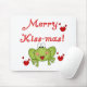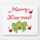 Um sapo verde giro com grandes lábios de kissable vermelho e texto vermelho que diz "Kiss-mas Feliz!" em cartões de cartões de natal, sacos de tote, Camisetas, canecas e muito mais.