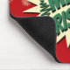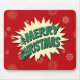Ilustração feliz do estilo cômico de Natal com árvore de Natal e decoração de flocos de neve em fundo vermelho