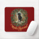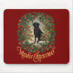 Enquadrada por uma coroa de folhas verdes, sagradas e frutas vermelhas brilhantes, o labrador negro se senta orgulhosamente, vestindo um colar vermelho que adiciona um toque sutil e alegre à cena. O fundo vitícola, com neve suave e um cenário pacífico de floresta, traz um charme nostálgico de Natal, que lembra os cartões de natal clássicos. presente de Natal ideal para amantes do labrador.
