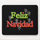 O texto vermelho e verde com flocos de neve brancos diz "Feliz Navidad" em cartões de cartões de natal, canecas, sacos de tote, botões, T-shirts e muito mais.