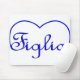A palavra italiana para filha é figlia. Feito com um roteiro azul e com dentro de cima de um coração.