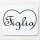 A palavra italiana para Filha é Figlia. Feito em roteiros pretos e em dentro do topo de um coração.