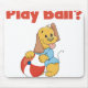 Um cão de filhote de cachorro marrom de vista ansioso com uma bola e um texto de praia que leia do "a bola jogo?" é caracterizado neste t-shirt do cão, sacola, caneca, etiquetas, ímãs, e mais.