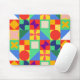 Este mouse pad tem um design de quadrados Bauhaus com formas ímpares dentro, repetido através do design.