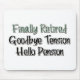 Finalmente aposentado: Adeus Tensão, Alô Pensão, citação de aposentadoria hilária. Essa bela e engraçada aposentadoria dizendo que seria um presente de aposentadoria humorístico.