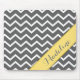 Moousepad moderno e moderno, com uma cinza e um gráfico de padrão zigzag branco chevron, que é digitalmente texturizado para se assemelhar ao papel de construção. Por cima do padrão está uma fita amarela stripe inspirada no álbum, com um nome personalizável modelo.