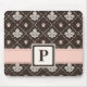 Um tapete do rato cor-de-rosa e marrom monogrammed bonito da flor de lis pode ser personalizado e personalizado com sua inicial do monograma. © Chrissy H. Estúdio do design, LLC. Todos os direitos reservados.