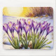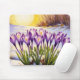 Belisque a sua estação de trabalho com a plataforma de rato do tema Crocus, mostrando delicada elegância floral em detalhes vibrantes.