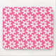 O design bonito do papel de parede floral com as flores pequenas bonitos da margarida com as caras de sorriso felizes ajustou-se contra um fundo cor-de-rosa. Imagem disponível em vários presentes e produtos.