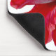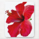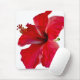 Uma flor vermelha bonita, o hibiscus tropical, flores através deste tapete do rato.