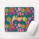 Bela Bela Boca-Floral Teal Floral Patterned Mousepad é um cheio floral de cores como rosa e amarelos e contém flores como girassóis, flores de feltro e papoilas
