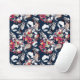 Mousepad Flores brancas e vermelhas em azul.