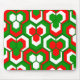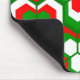 Este mouse pad tem um design geométrico de Natal de hexágonos em conjuntos de três que se parecem com flores em vermelho, branco e verde.