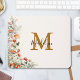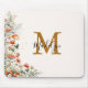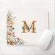 Apresentamos nosso Mouse Pad Floral botânico de cogumelos da Floresta Monograma. Com ilustração em aquarela de cogumelo, morango, flores em fundo branco. E texto editável que pode ser personalizado para adicionar um toque único.