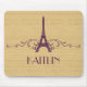 Mousepad Flourish francês elegante e chico, com fundo de aparência falsa em madeira e design de Torre Eiffel em roxo, enfeitado com cascatas de na moda. Esta design de moda e moda é fácil de personalizar com o texto personalizado de sua escolha. Clique em "Personalizar" para encontrar mais opções de personalização.