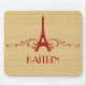 Mousepad Flourish francês elegante e chico, com fundo de aparência falsa em madeira e design de Torre Eiffel em vermelho escuro, com cascatas de espirais na moda. Esta design de moda e moda é fácil de personalizar com o texto personalizado de sua escolha. Clique em "Personalizar" para encontrar mais opções de personalização.