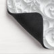Uma coleção de cinzas prateadas, intricadamente desenhadas, colchando flores margaridas e padrões girando sobre fundo branco.