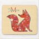 Mousepad Folk Art Flower Pattern Fox Personalizado