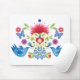 Imagens estilizadas, do Mod e do Folksy em um mouse pad. Mantenha um escritório organizado e bonito. Aves, cravos, margaridas, borboletas e corações folclóricos bonito para um fundo branco de neve. Reduza a imagem do produto para uma mensagem ou sentimento personalizados.