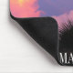 Este inspiracional Mouse Pad é uma fotografia original de MaeFlowers de nuvens no céu leste refletindo o pôr do sol no oeste, sobre o Golfo do México. O céu tropical da noite é banhado num brilho rosa quente acima da silhueta escura das palmeiras. As nuvens estão se desenvolvendo em formas muito interessantes, parecendo quase brinquedos fofinhos ou...use sua imaginação... as cores cor-de-rosa suave das nuvens estreitas perto do fundo da foto se intensificam à medida que o sol atinge as formas grossas e ondulantes das nuvens mais espessas ascensões no céu. As formas inchadas no topo das nuvens têm realces amarelos. Centrado perto do fundo do mouse está a palavra IMAGINE, em letras brancas e altas sobre o fundo escuro das palmeiras. Este texto está definido para ser personalizado ou eliminado conforme desejar.