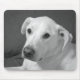Este mouse pad apresenta uma foto em preto e branco de Olive, uma bela e cheia de labradores.