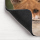 Um mouse pad com uma fotografia de querido com uma pequena raposa laranja se destacando por trás de um logotipo na natureza.