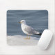 Uma gaivota flutuando pelo rio Hudson em um escoamento de gelo em um dia ensolarado. Foto tirada em Verplanck, NY.