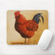 Rhode Island Red Chicken Rooster em pé na grama seca em um dia quente e ensolarado de verão. Trabalho de arte realista criada de uma pintura original de óleo pelo artista equino e da fauna selvagem Crista S. Forest.