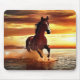 Mouse Pad em um retrato de um belo cavalo selvagem galopando pelo surf, contra um céu ensolarado