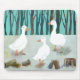 Três gansos brancos na madeira do inverno ilustrada na mouse pads feita sob encomenda. ((Contato ujean4791@gmail.com para artigos feitos sob encomenda do trabalho e/ou da harmonização.))