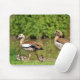 Casal de Gansos Egípcios (Alopochen aegyptiacus - Bird) na relva com dois pintinhos
