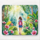 Uma garota caminha graciosamente através de uma selva exuberante, seus passos iluminam o vibrante caminho verde. Árvores altas a cercam, suas folhas formando uma espessa cobertura. O ar é rico com os sons da vida selvagem, e a luz do sol se filtra através da folhagem densa, lançando sombras apavoradas no chão.