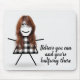 Garota picante com óculos, cabelo, vestido de xadrez de búfalo e citação inspiradora sobre fundo branco. A citação pode ser alterada.