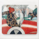 Mousepad Garota e Cachorro num Automóvel Vermelho