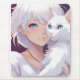 Aproveite a arte serena com um gato branco e uma senhora de branco, exuberando elegância e mistério.