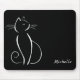 Gato branco minimalista em uma cobertura preta do mouse. Personalize este elegante mouse pad com seu nome.