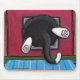 Um gato leve excesso de peso do smoking esforça-se para obter através da aleta do gato neste design lunático bonito do mousepad do gato. Os mousepads da arte do gato fazem grandes presentes para a casa ou o escritório de todo o amante do gato! De uma pintura original. © Lisa Marie Robinson de Copyright. Todos os direitos reservados. É ilegal para usar ou duplicar isto, ou alguma de nossas imagens, sem autorização escrita.