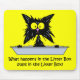 " O que acontece na caixa de maca, permanece nos desenhos animados do gato preto do litterbox" com atitude no litterbox.