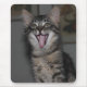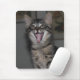 Este mouse pad apresenta nosso gatinho listrado de cinza, Cáspio, no meio de um grande bocejo de gatinho. Sua boca aparece num sorriso e sua longa língua rosa é completamente estendida de sua boca mostrando suas gengivas sem dentes. Este mouse pad é perfeito para todos os amantes de gatos.