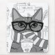 Gatinho adorável embrulhado em cachecol, vestindo óculos e segurando café em um mouse personalizado.